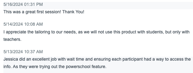 CSAT COMMENTS FOR ONSITE AND REMOTE SESSIONS FOR SCHOOLOGY, CURRICULUM & INSTRUCTION, AND DIGITAL LEARNING LEADERS ACADEMY ON BLENDED LEARNING